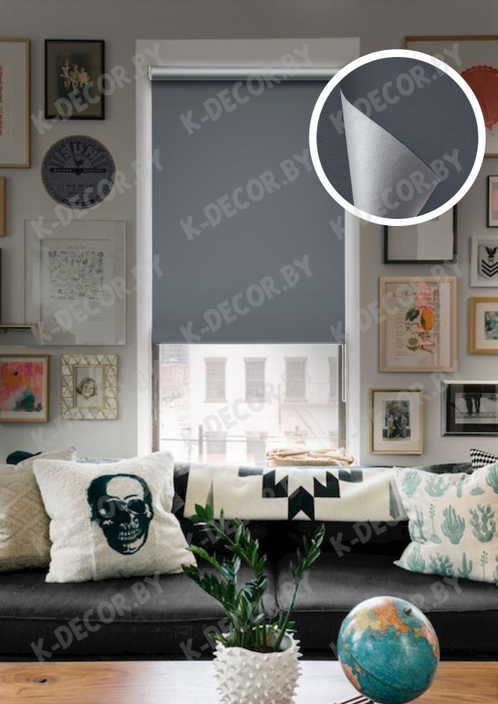 Идеальный вариант если вам необходимо полностью оградить себя от солнечного света и даже отразить солнечные лучи для меньшего нагрева помещения в теплый период года. Хотелось обратить внимание, что тыльная сторона ткани, которая выходит на улицу будет серебристого цвета в любом случае. Для обеспечения наименьшей светопроницаемости рекомендуем приобретать комплект направляющих в аксессуарах ниже.