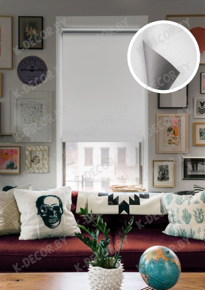 Идеальный вариант если вам необходимо полностью оградить себя от солнечного света и даже отразить солнечные лучи для меньшего нагрева помещения в теплый период года. Хотелось обратить внимание, что тыльная сторона ткани, которая выходит на улицу будет серебристого цвета в любом случае. Для обеспечения наименьшей светопроницаемости рекомендуем приобретать комплект направляющих в аксессуарах ниже.